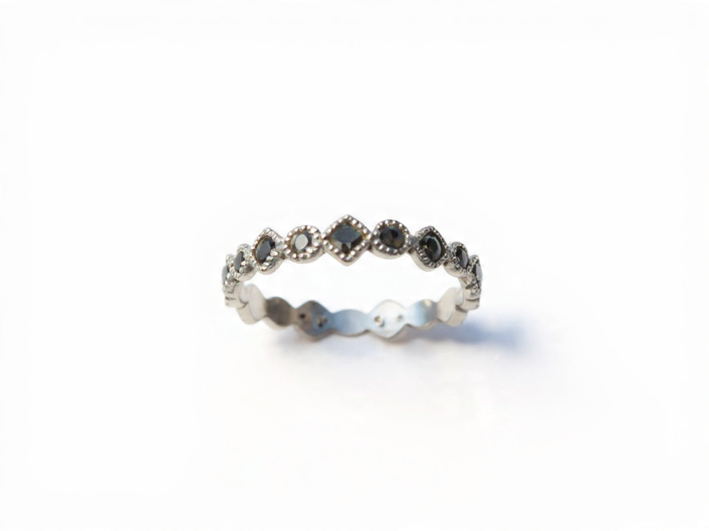 Argolla de plata .925 con marquesita con diseño de rombo y círculo